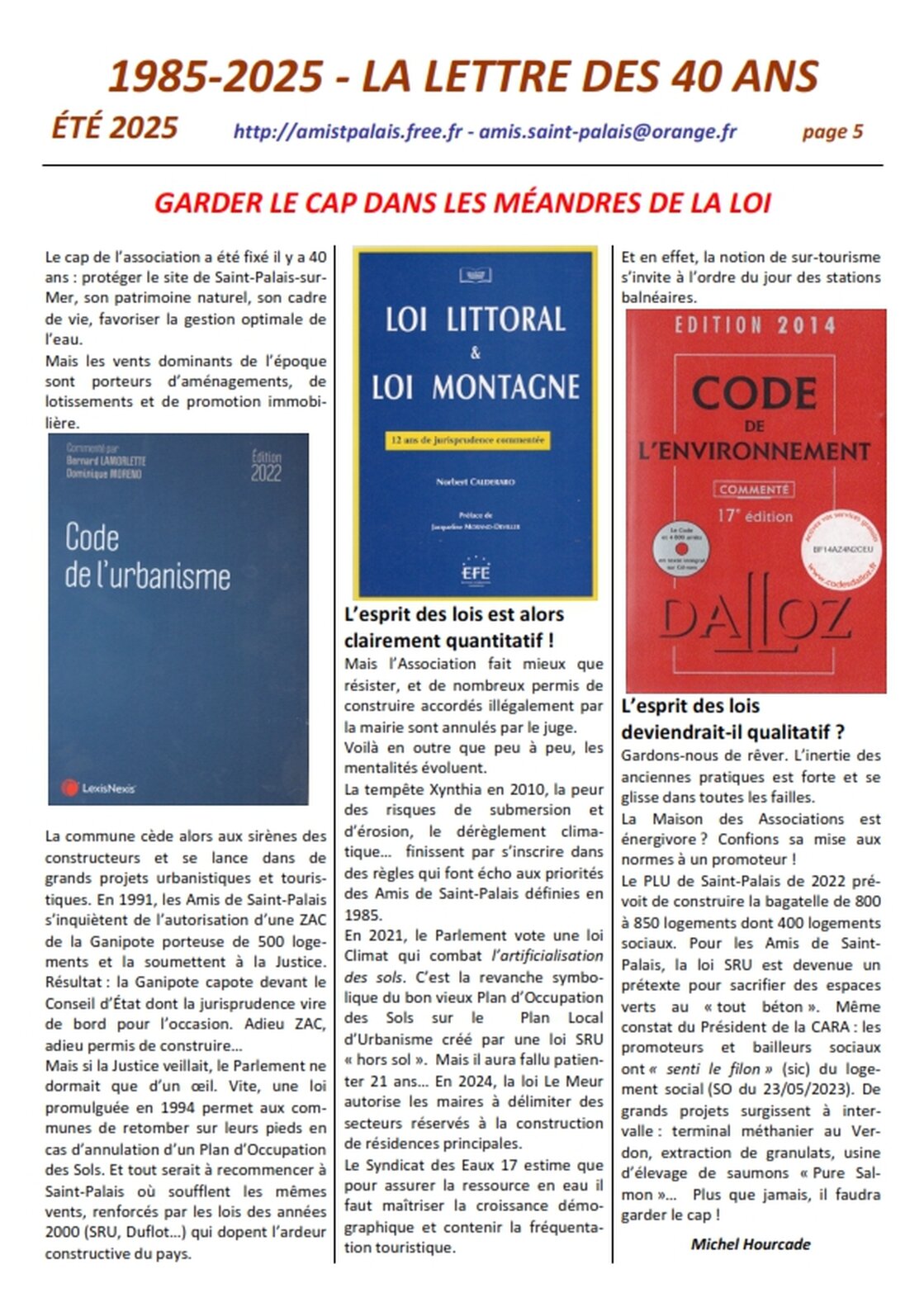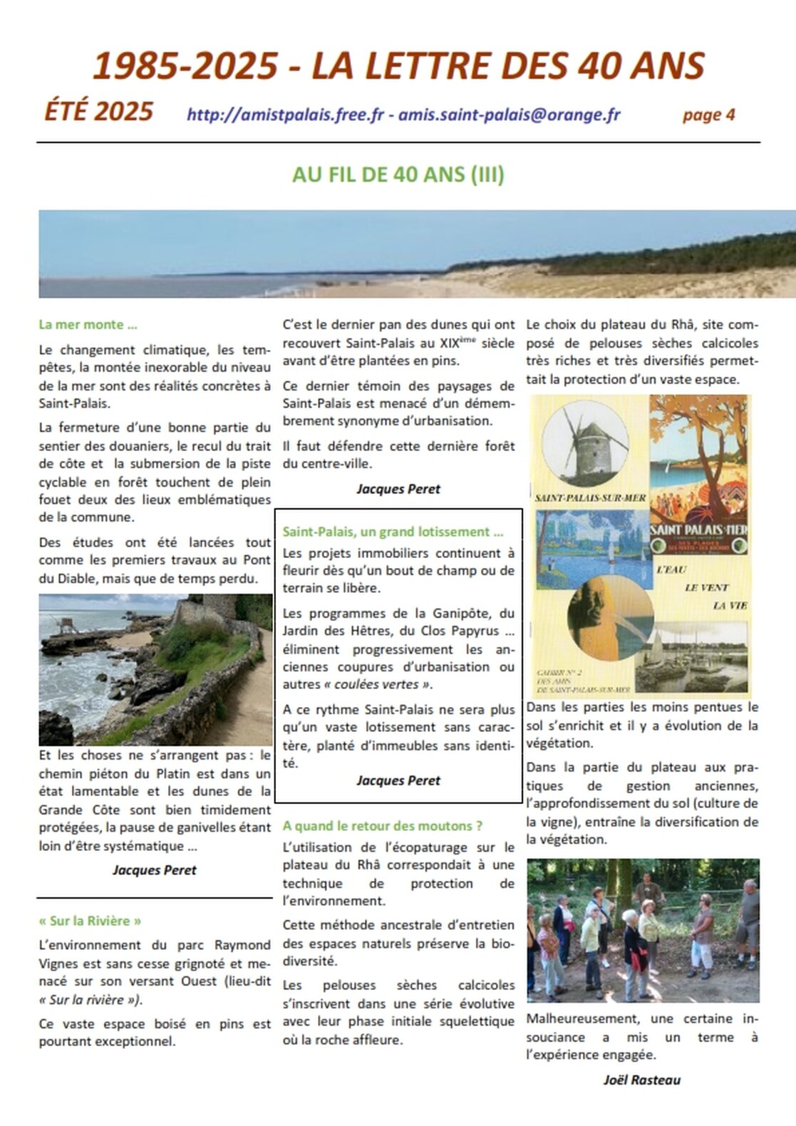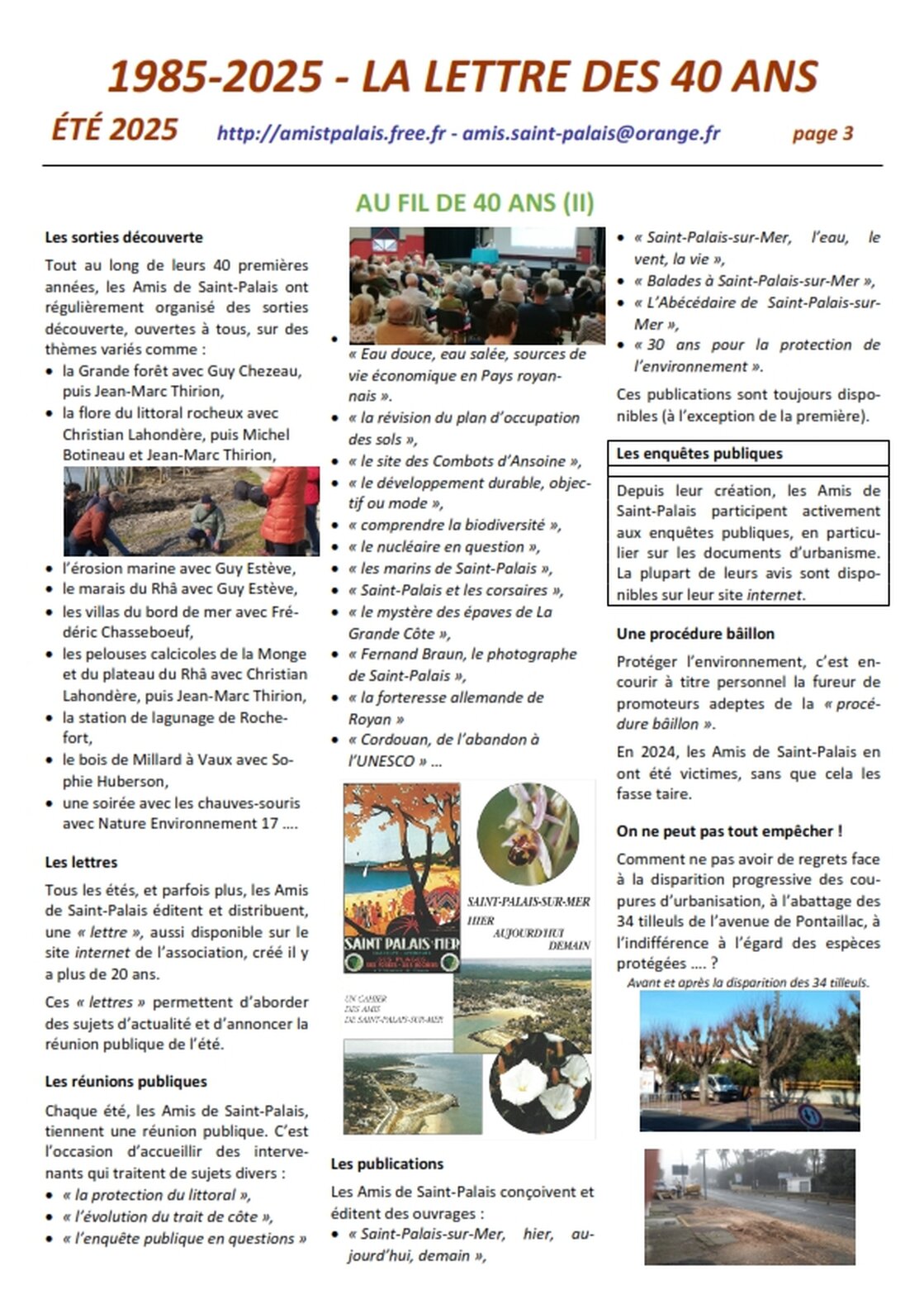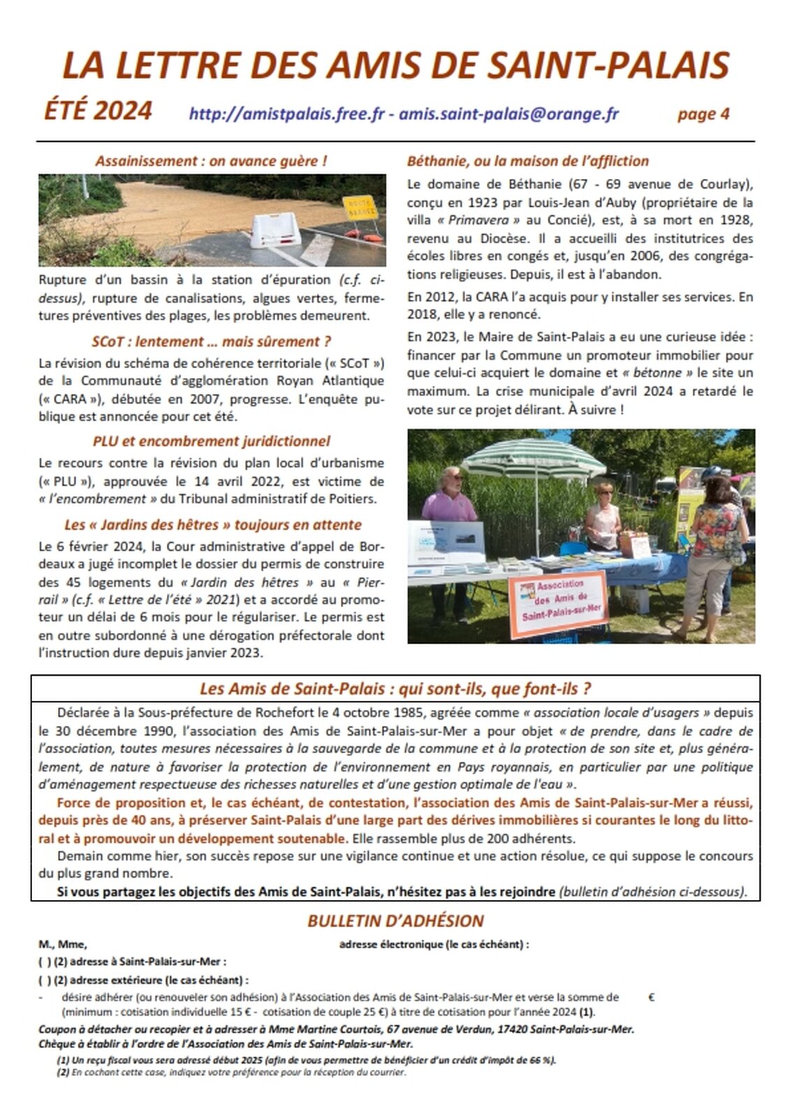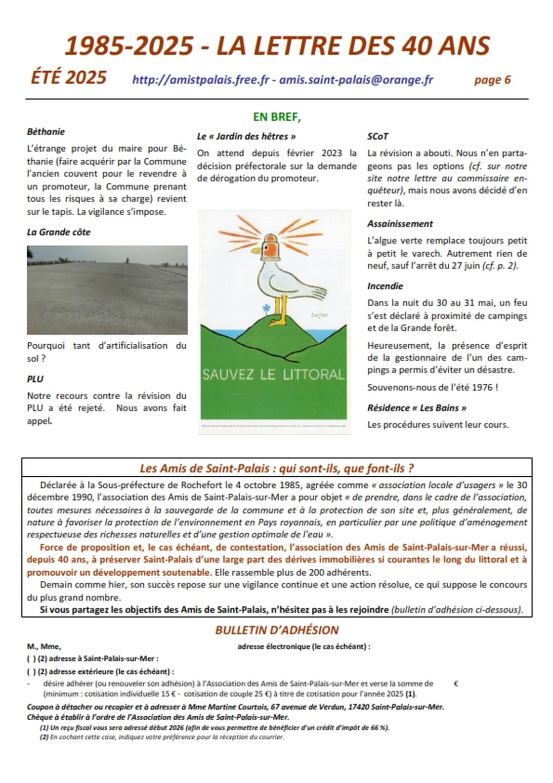 Association agréée par arrêté de M. le Préfet de la Charente-Maritime du 30 décembre 1990 au titre des associations locales d’usagers 25 avenue Trez la Chasse - 17420 Saint-Palais-sur-Mer tél : 05 46 23 15 81 – amis.saint-palais@orange.fr