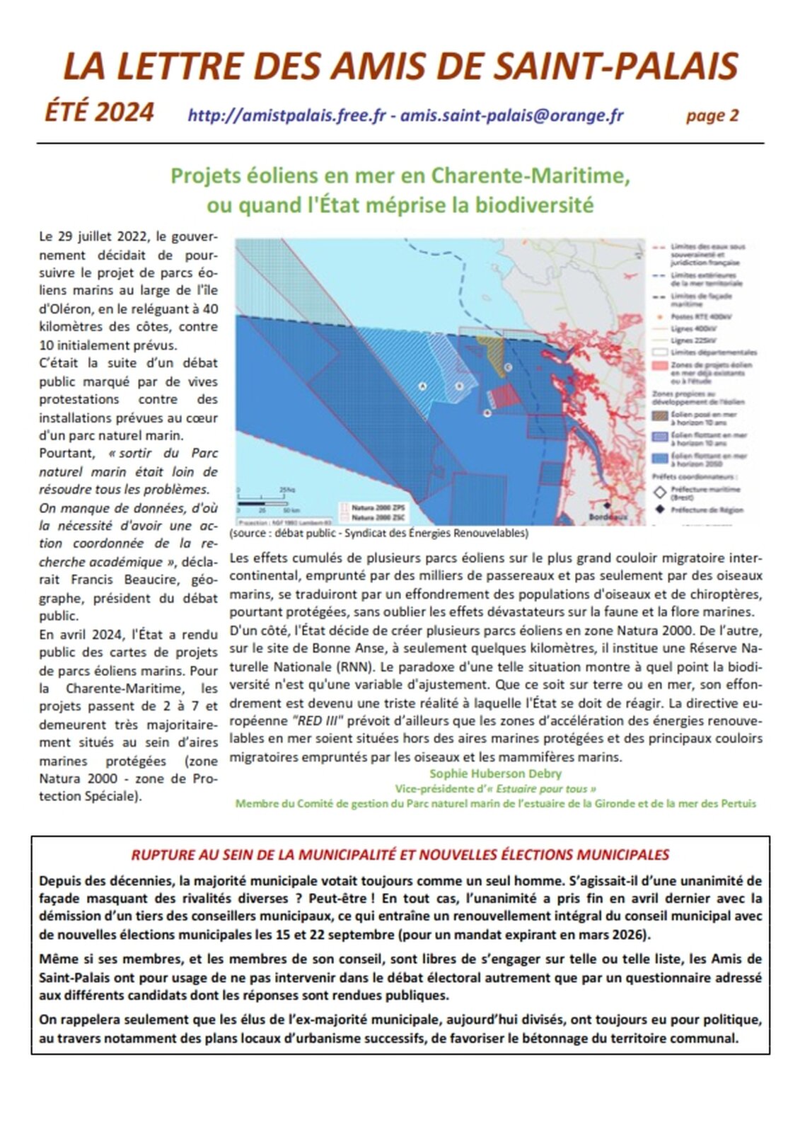 Mme Sophie Huberson Debry, membre du Comité directeur de Nature Environnement 17 et du Comité de Gestion du Parc Naturel Marin, évoquera ses expériences et le projet éolien au large d’Oléron.