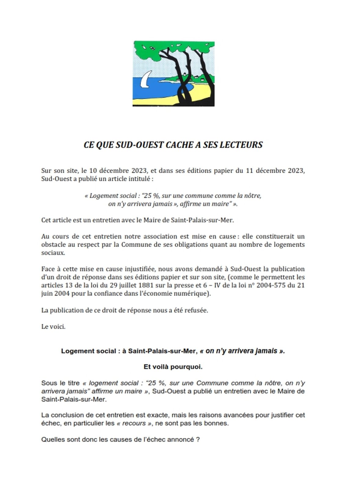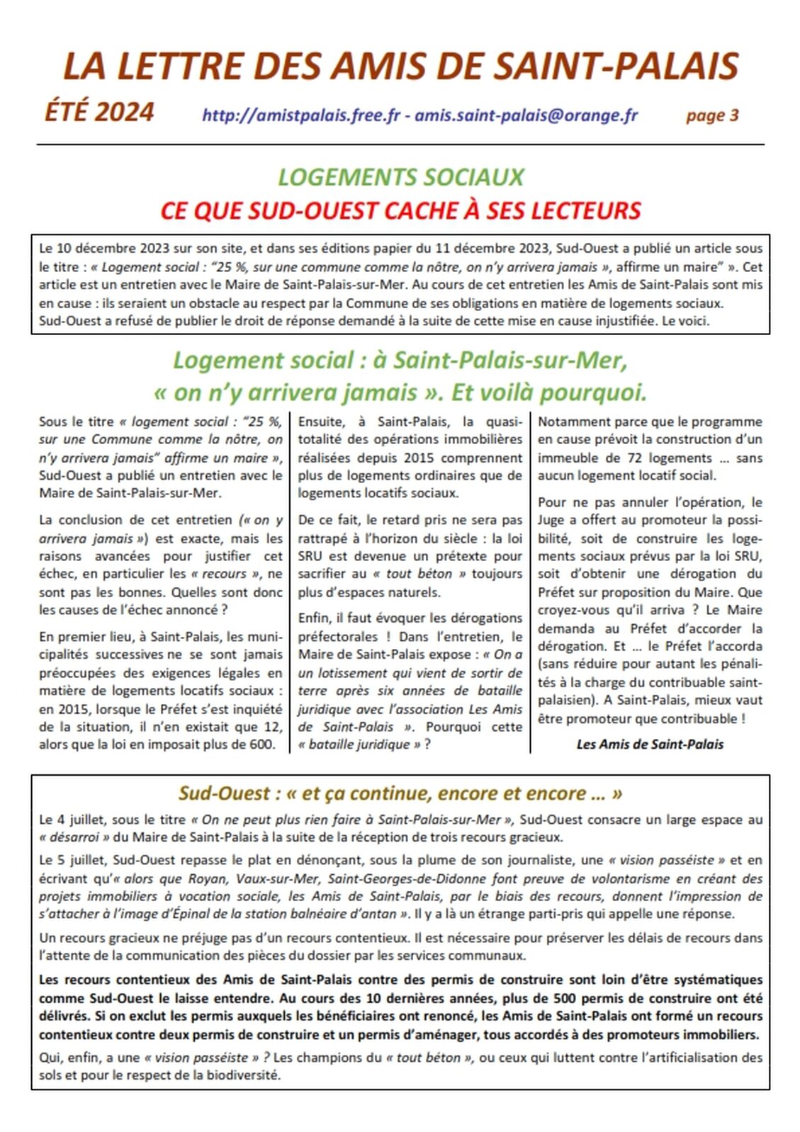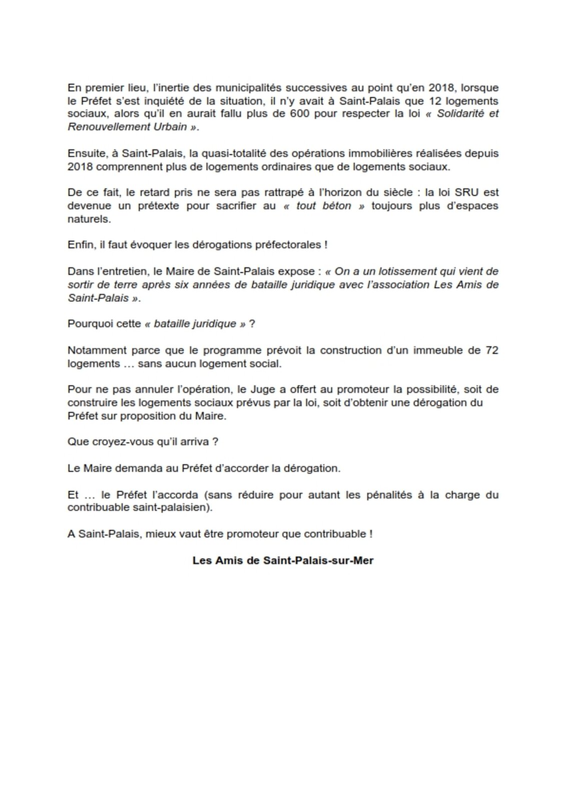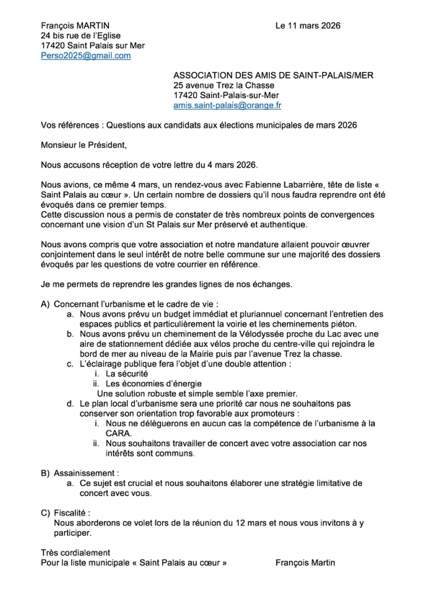 Réponse de la liste Saint Palais au coeur