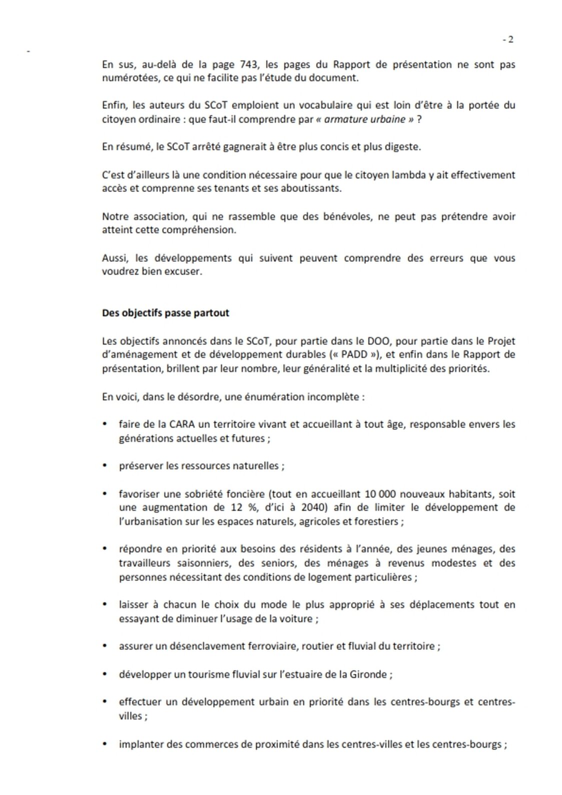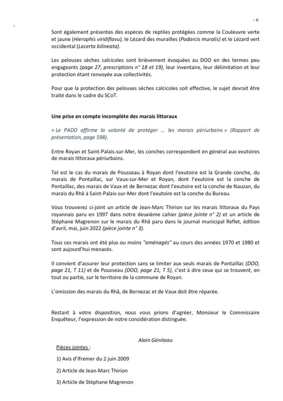 Lettre au commissaire enquêteur