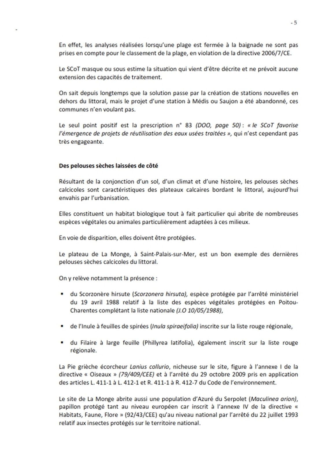 Observations sur la demande de dérogation de la sarl Le Jardin des Hêtres