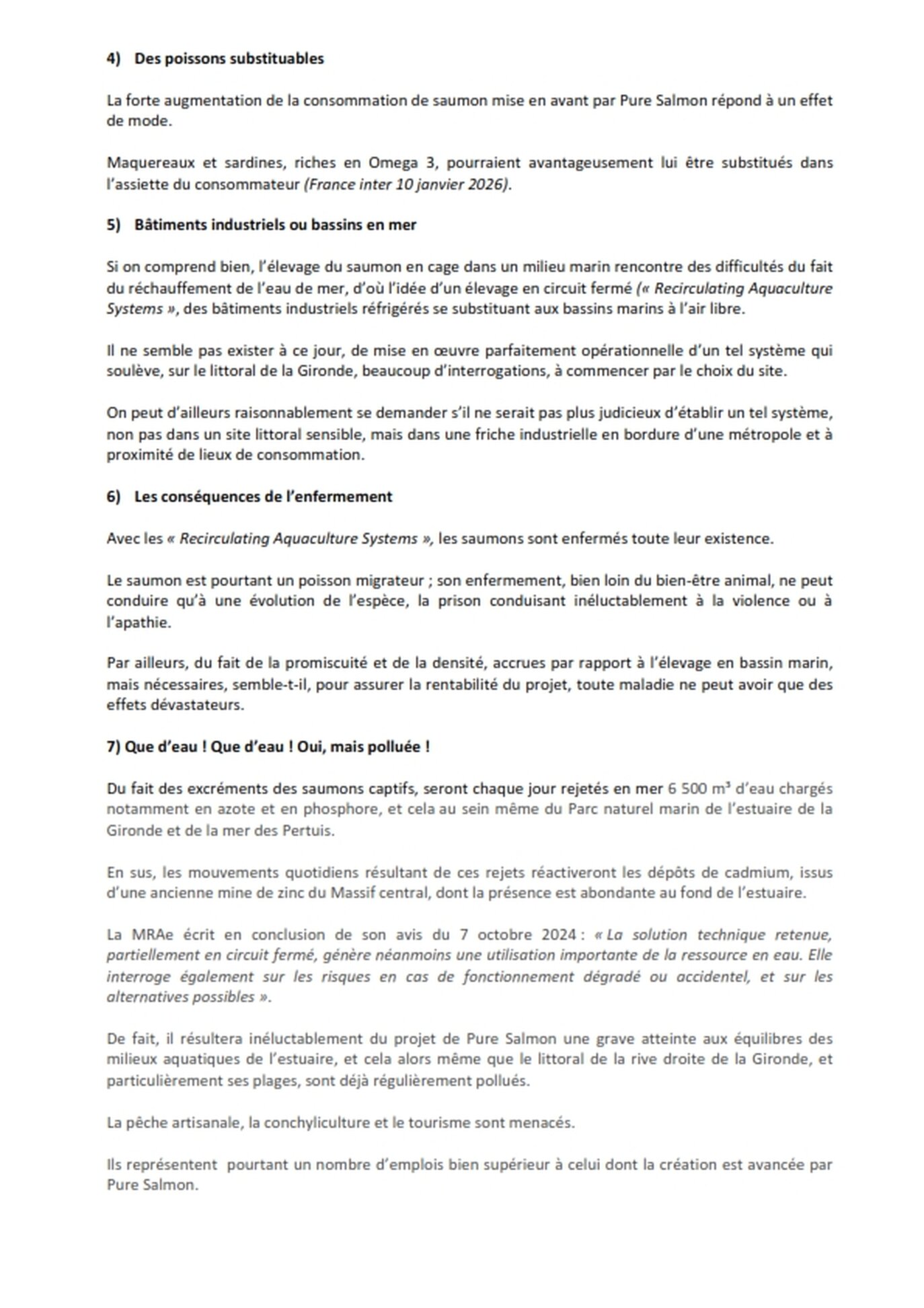 A lire en cliquant ici , l'expertise d'incidences de l'exploitation d'une ressource en eau saumâtre pour l'élevage de saumons - Le Verdon sur Mer (33)