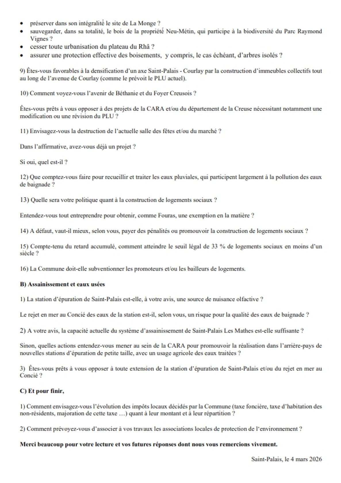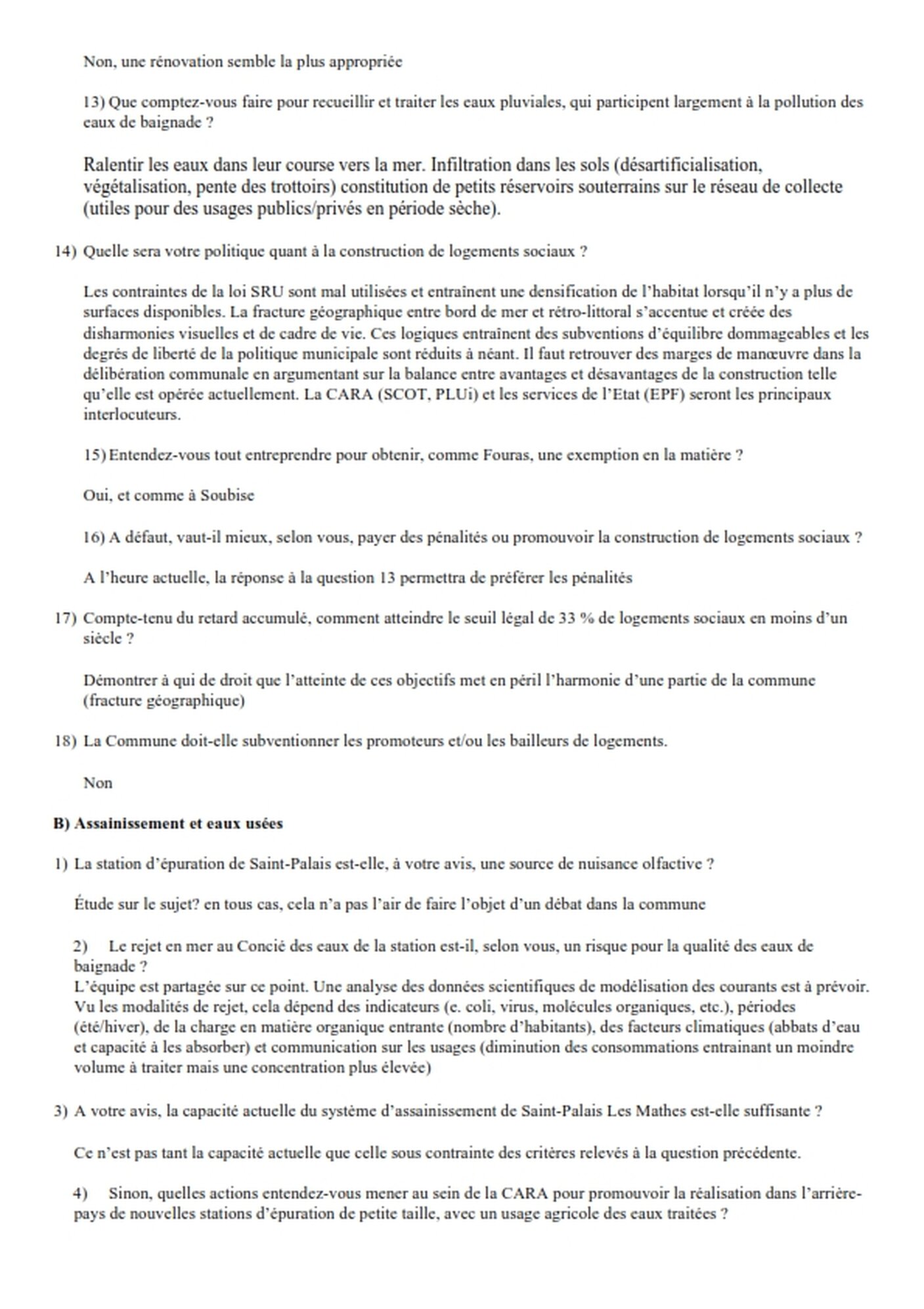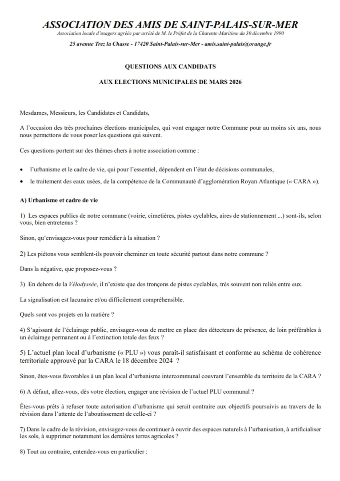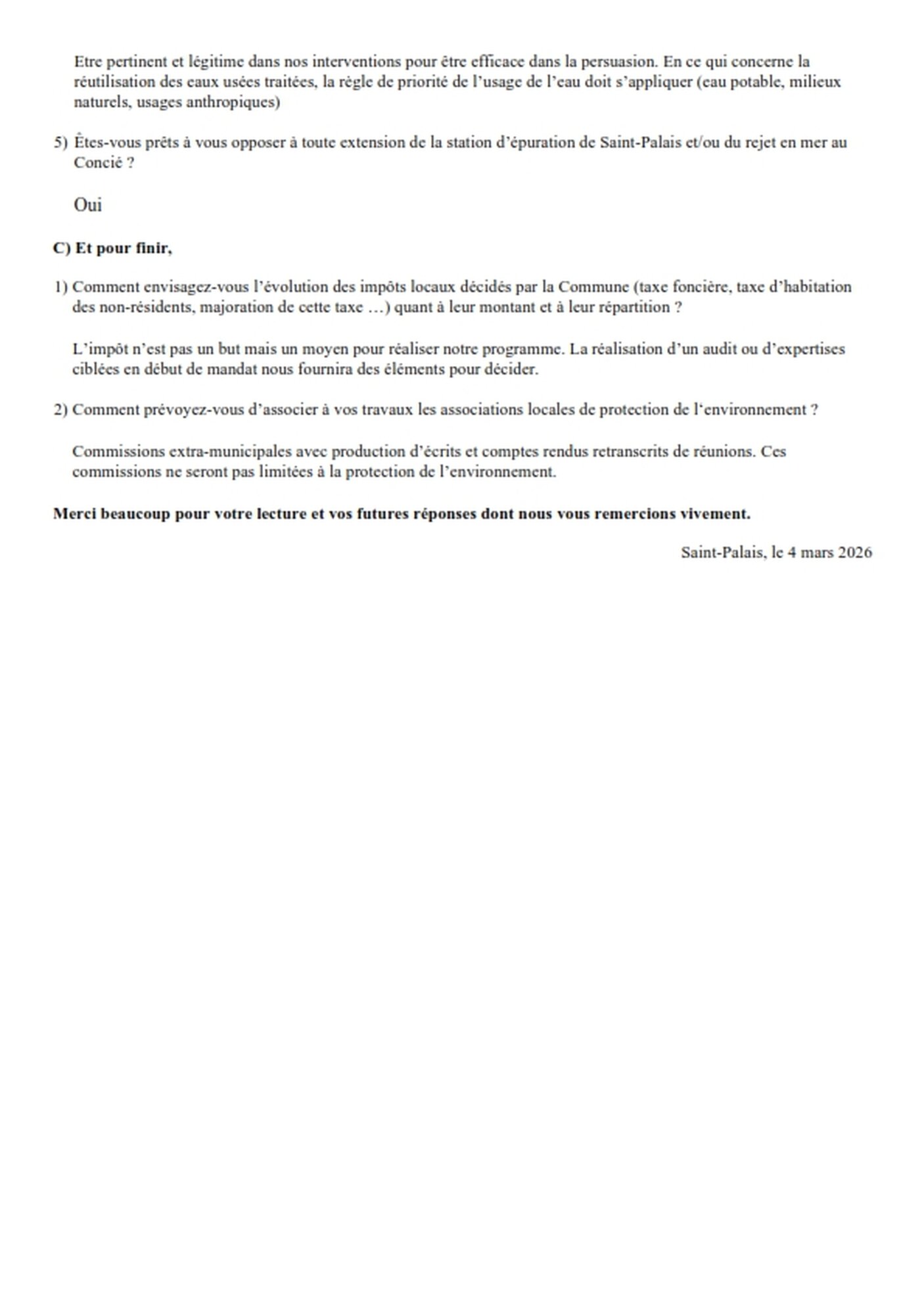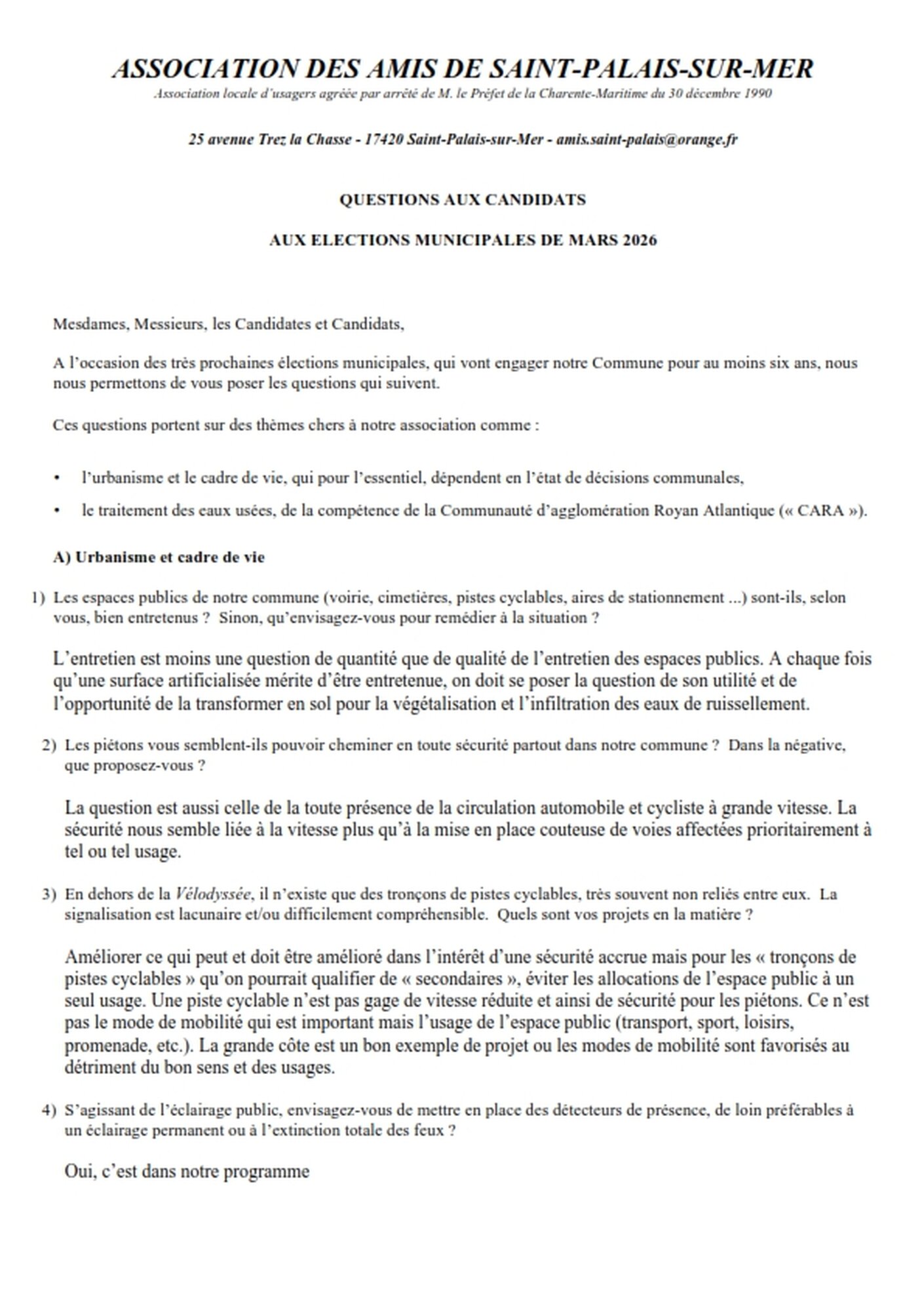 QUESTIONS DES AMIS DE SAINT-PALAIS AUX CANDIDATS