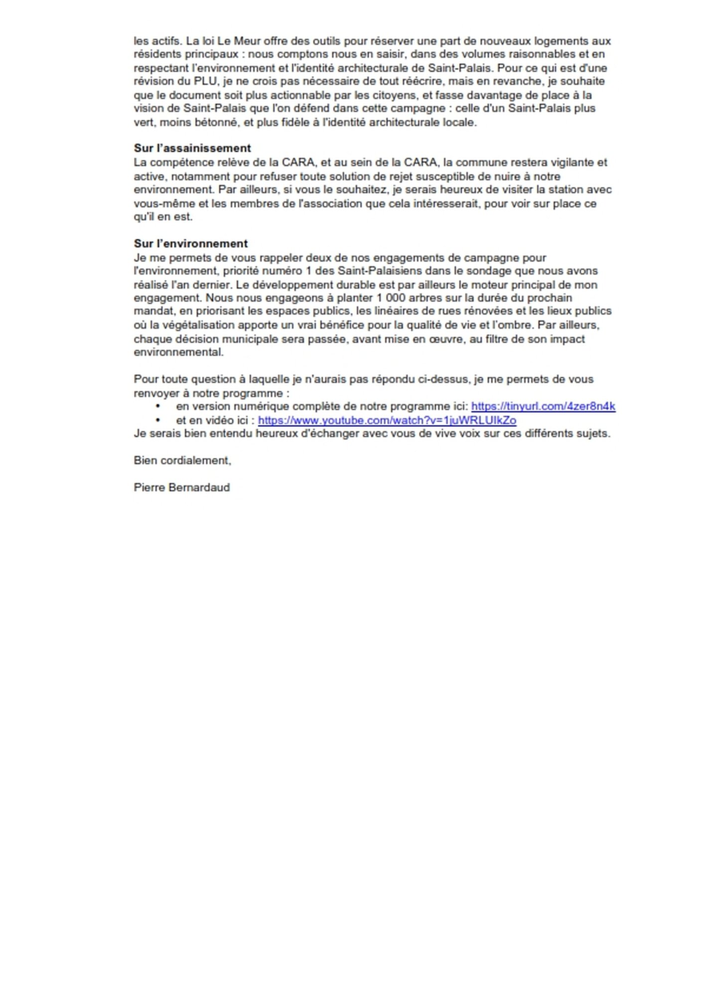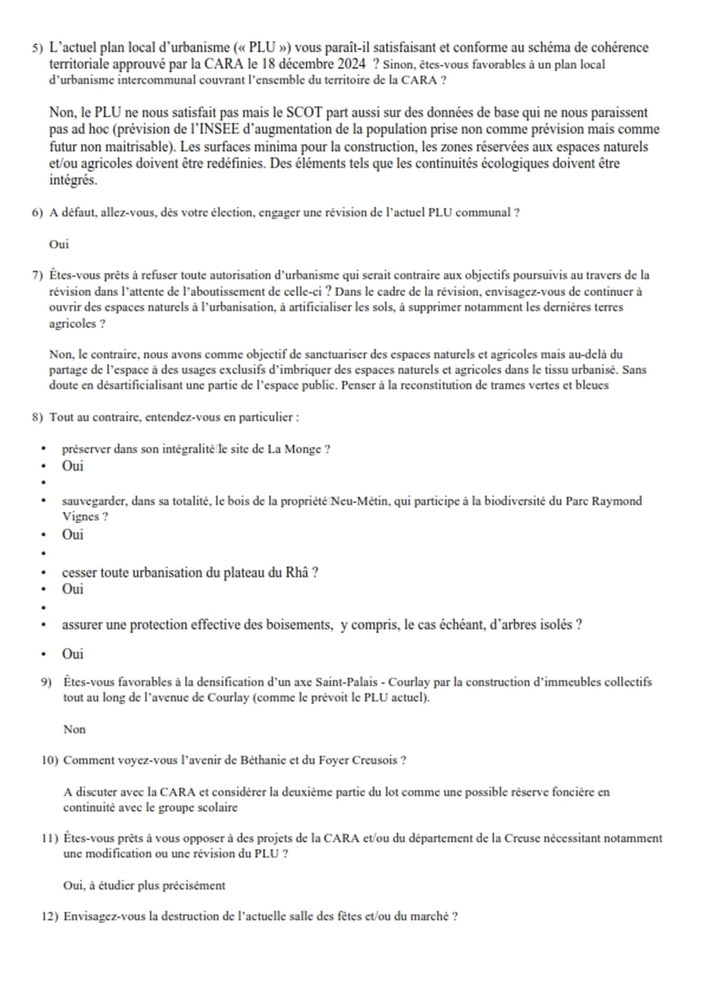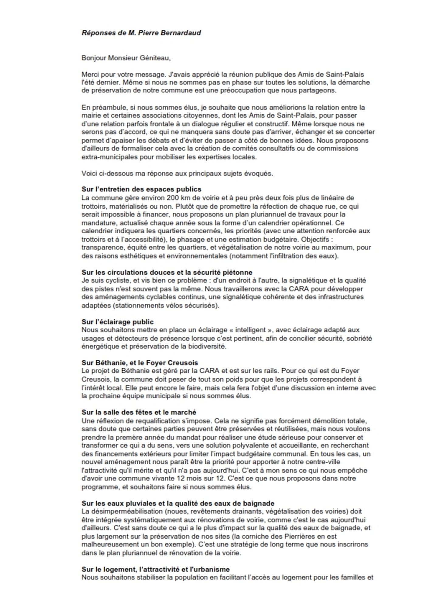 Réponse de la liste de Mr Pierre BERNARDEAU